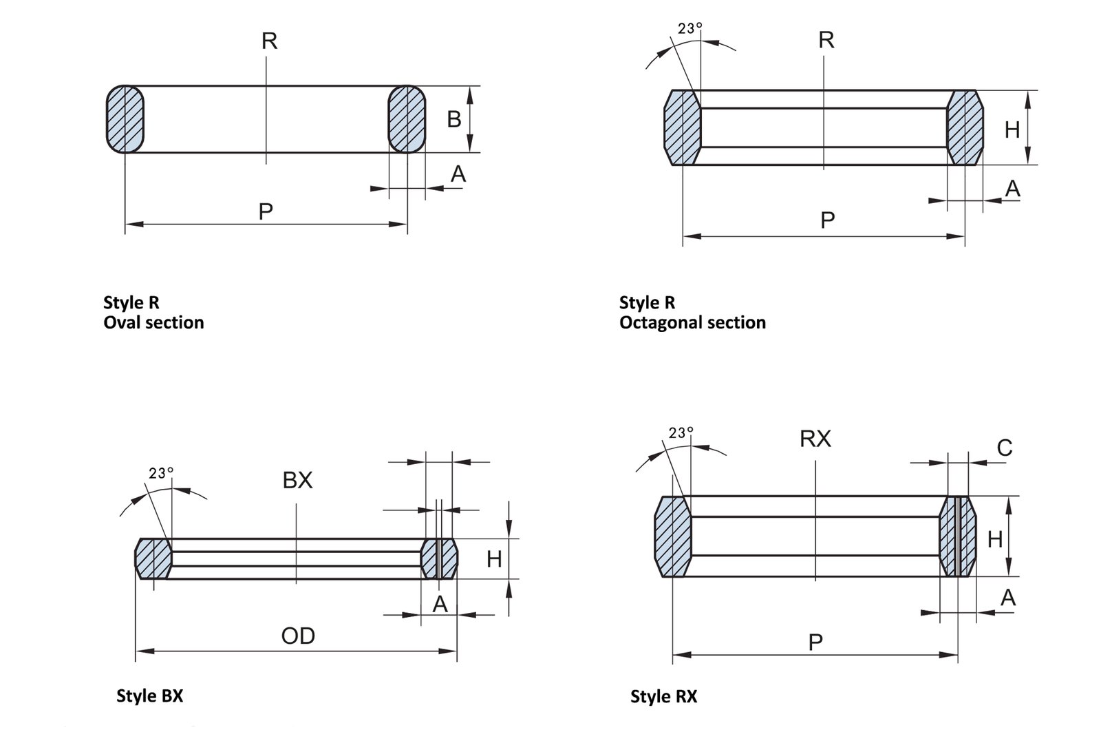 Standard Style R Ring Type Joints are manufactured in accordance with both API 6A and ASME B16.20 size/ratings. Available in both oval and octagonal configurations, both types are interchangeable on the modern octagonal type grooved flanges.